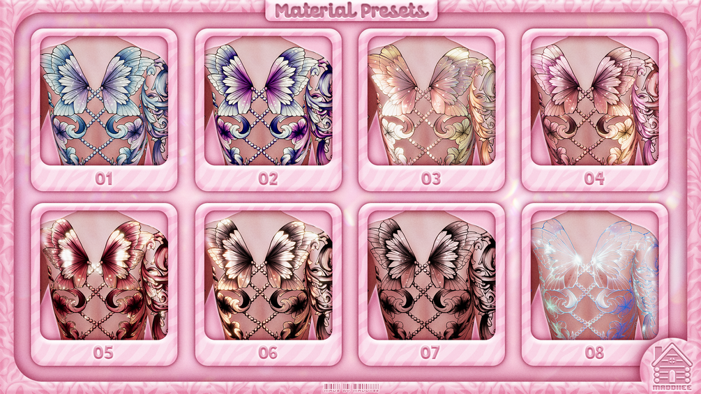 This is one of my all time favorite textures ive ever made! Its so my style and so out there! This is extremly eye-catching and perfect for club dancing or just beeing extra fancy! I also made a custom normal map for this to make it really pop. Remeber to check out the youtube video for an in depth look at all the different materials!