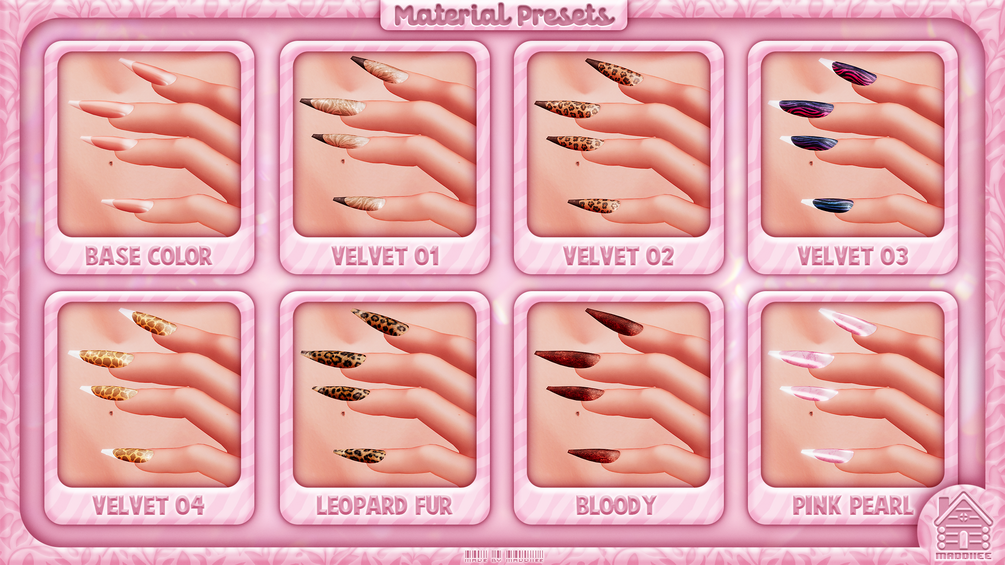- Comes with preset poi material setup for each color of body and nail meshes.